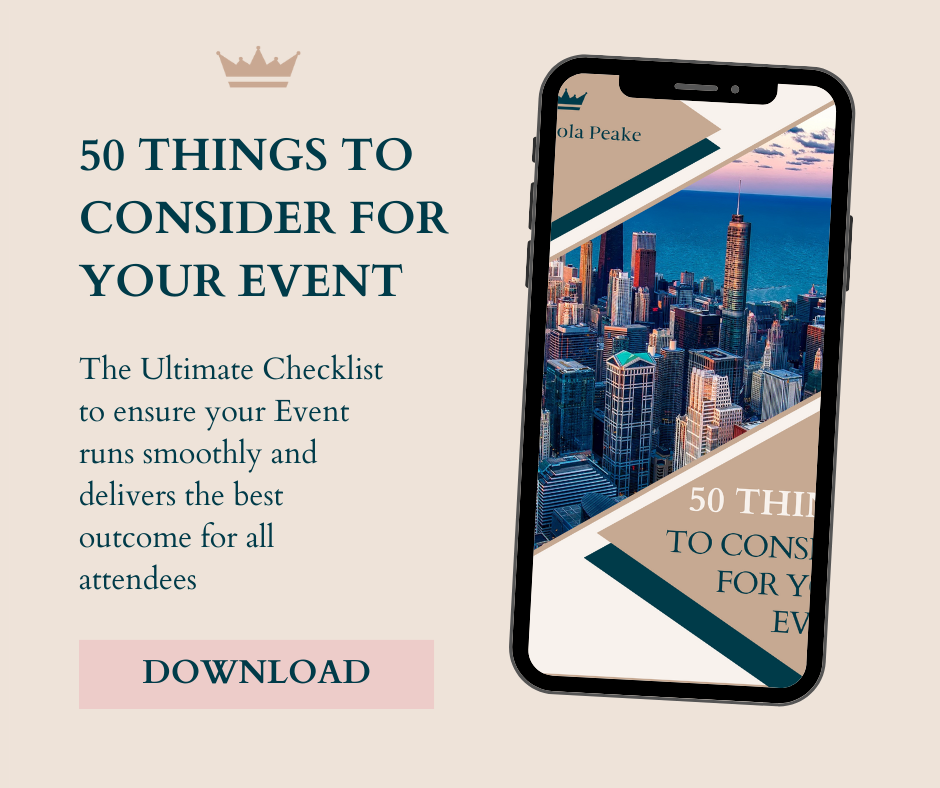 Please complete the below form to grab your free copy of '50 Things to Consider for your Event'.