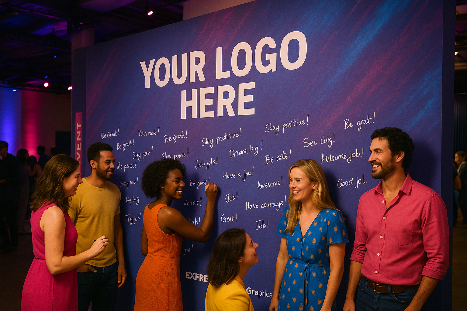 This large wall will display your brand logo, and it will be where attendees write their own Bold Intentions, affirmations, advice, or shoutouts to others.